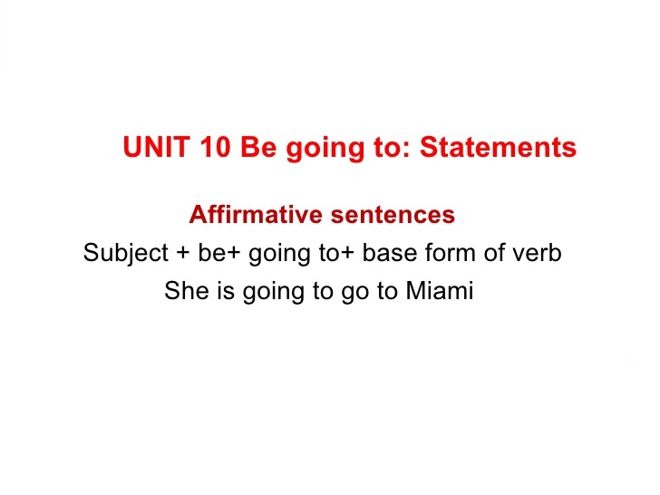 Se forma con el verbo"to be" conjugado para la persona correspondiente, seguido de "going to" y el verbo base.